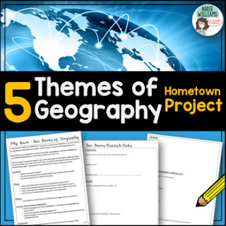 Teachers work so hard to ensure content in the classroom connects to students' lives. Thankfully, this project does exactly that! Students will apply their knowledge about the five themes of Geography to their town. They will research their community's location, place, region, human-environment interactions, and movement.